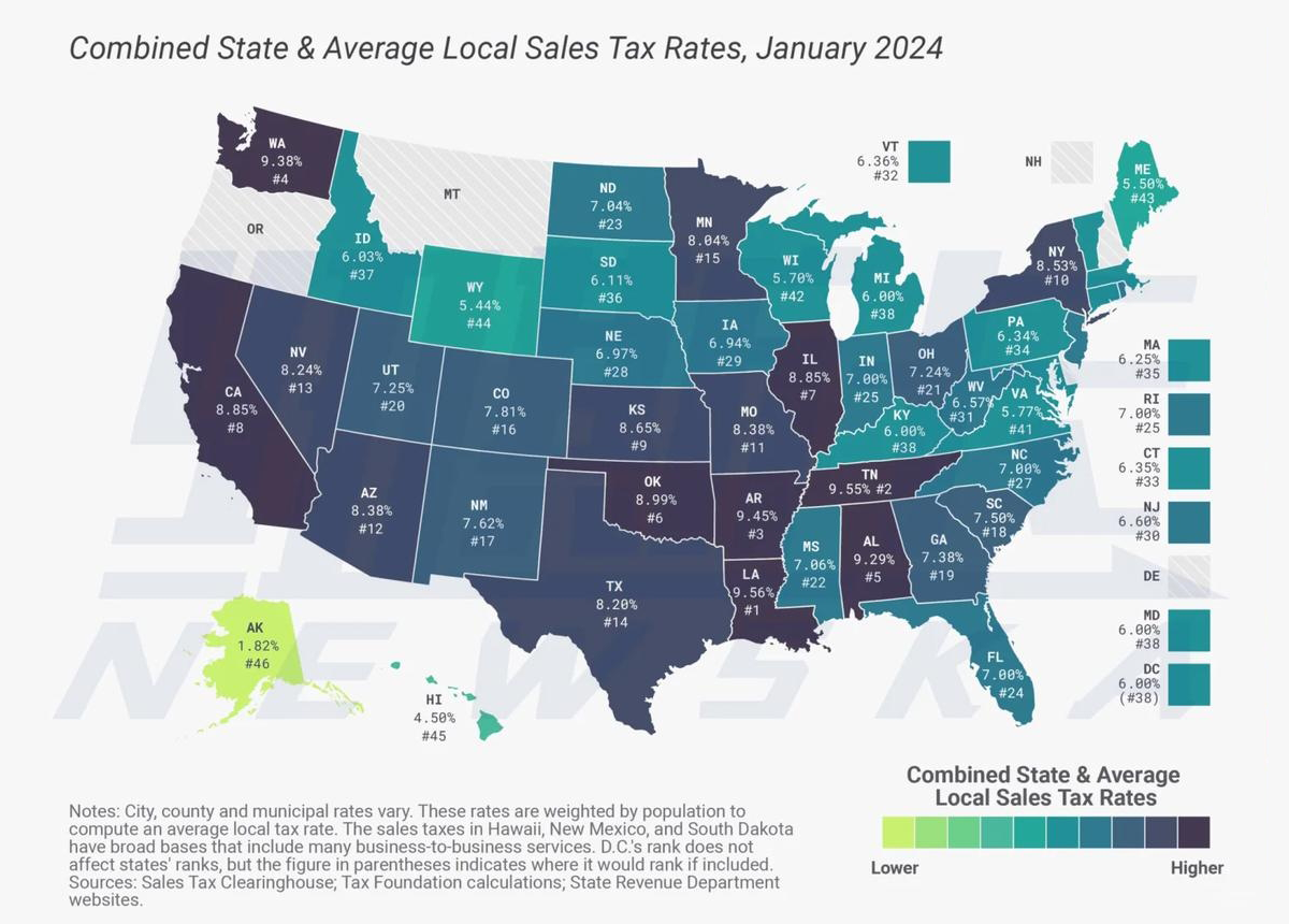 所得稅:分州所得稅和聯(lián)邦所得稅21%,銷售稅:需要申請銷售許可證。
